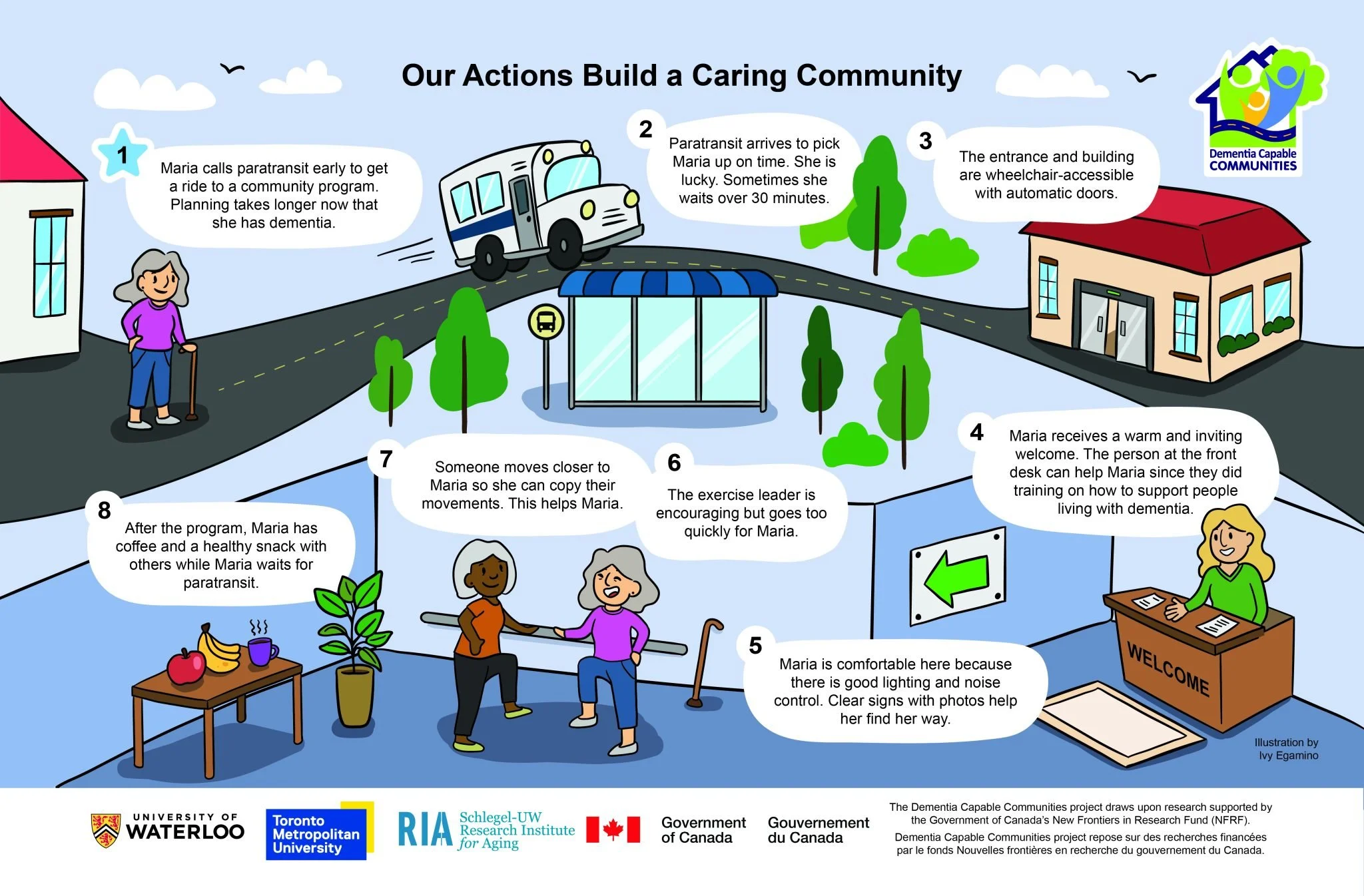 Together we created free tools for all community members + municipalities - Learning Modules, an Action Plan (complete with detailed process tips), Journey Maps (that were also featured as adverts on public transit), Video with co-researcher Kathleen Vanderlinden, who is living with dementia. You can check everything out at dementiawellness.com/dementia-capable-communities/.
